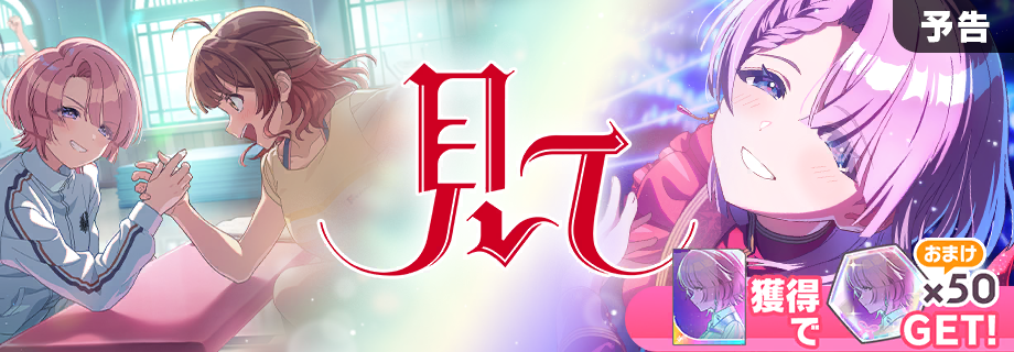 ・本ガシャ終了後に『【見て】有村 麻央』を獲得した際に同時に獲得できる「見て(シンプルアレンジ)(髪型)」が着替えにて表示されない場合、一度タイトルに戻ることで表示されるようになります。